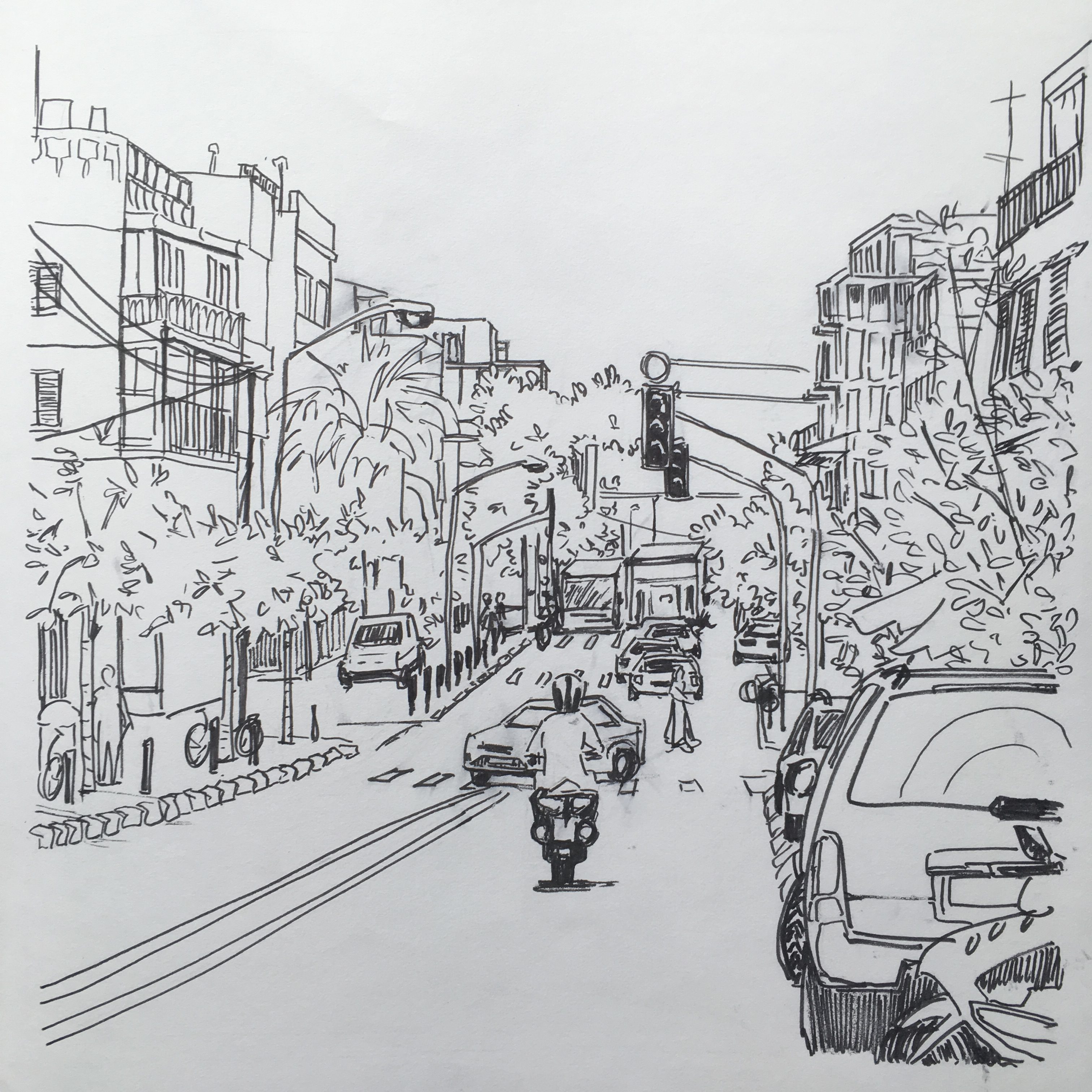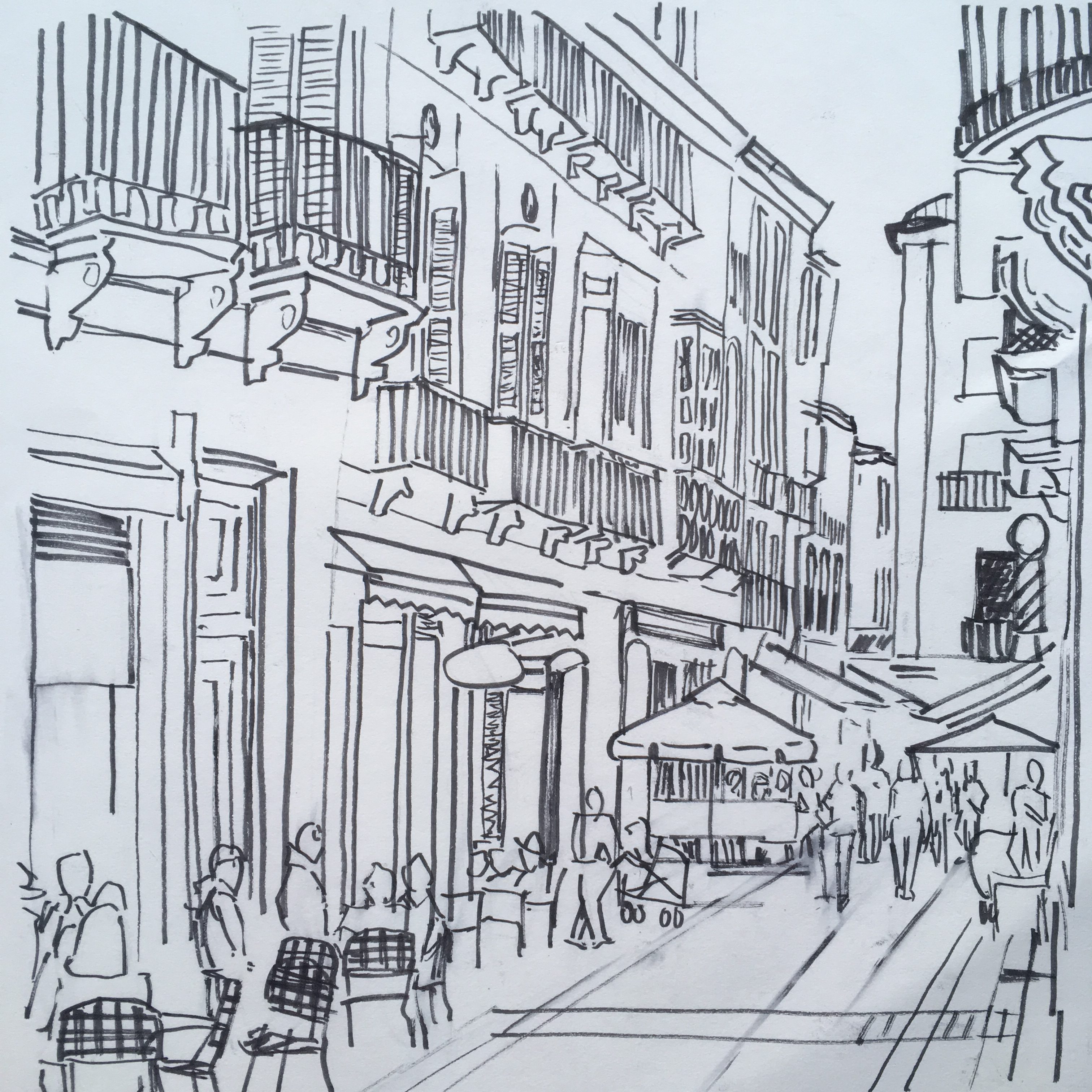 When I land in a place and soak up the atmosphere, smells and sounds, I want to capture it all in many sketches. For me, it is more evocative than the written word. The detail I choose to include (subconscious or consciously) demonstrates what stands out about the place.